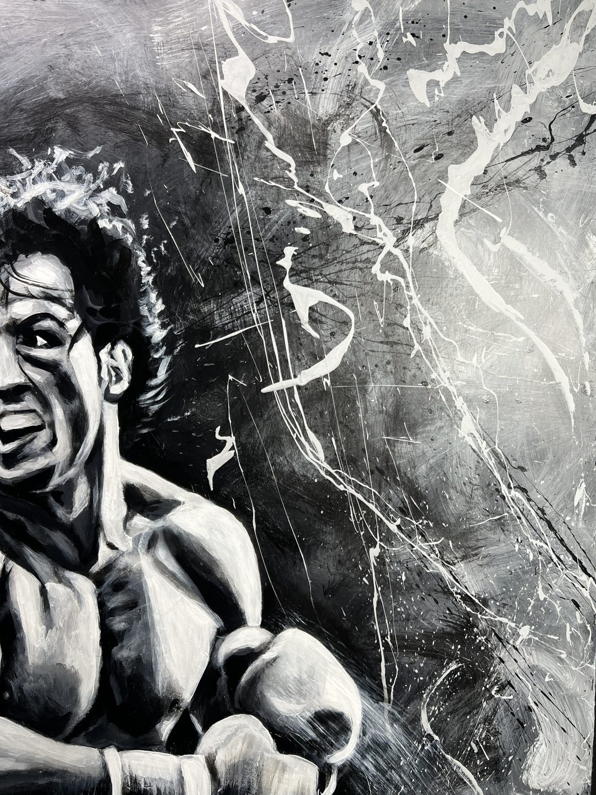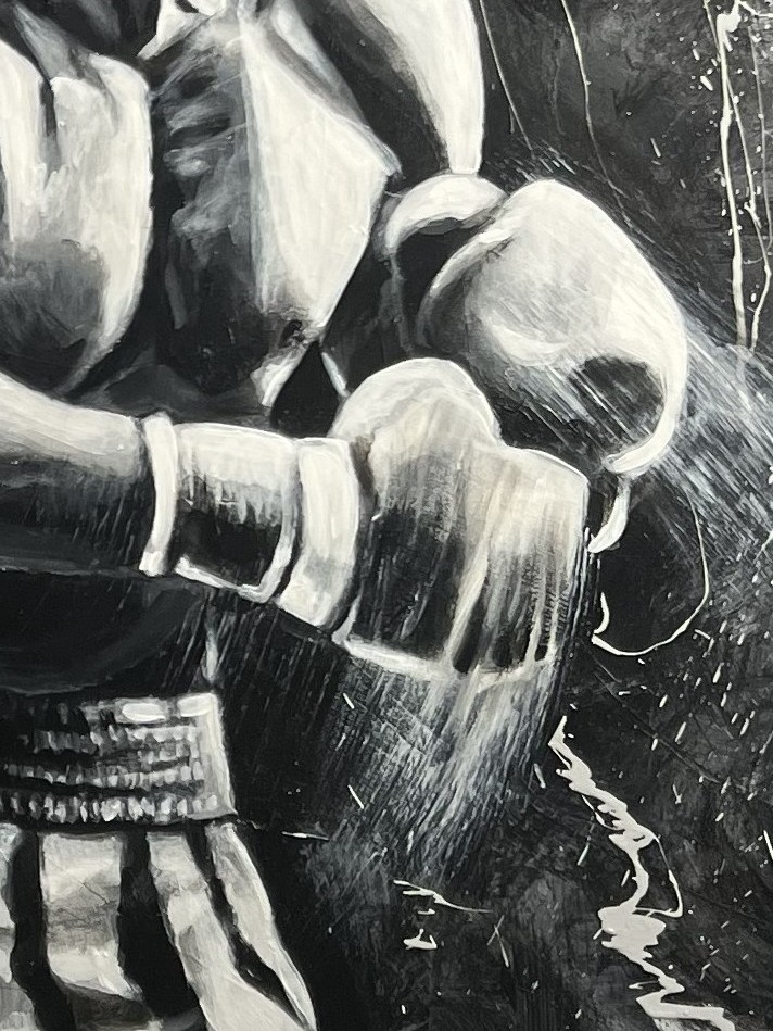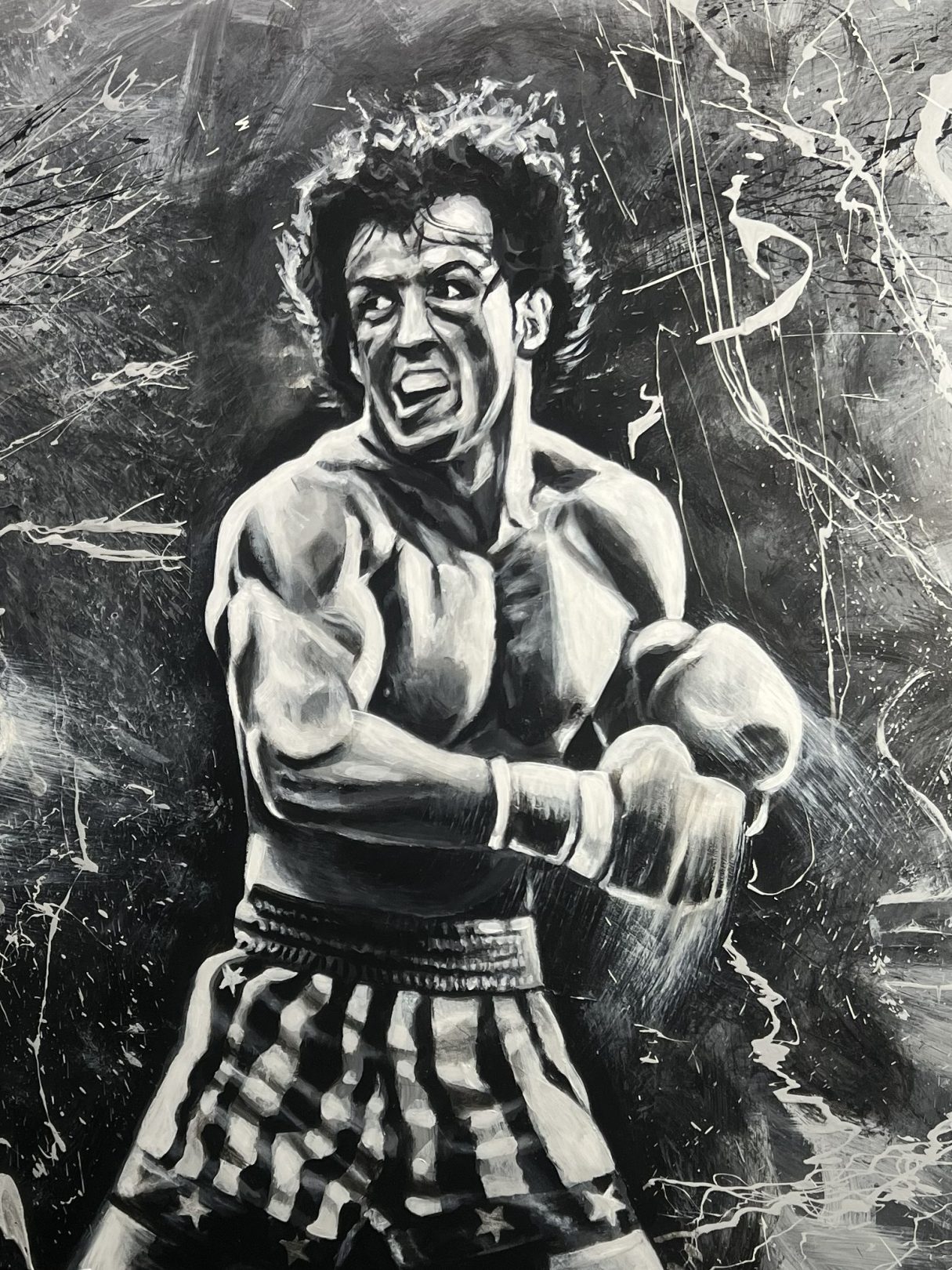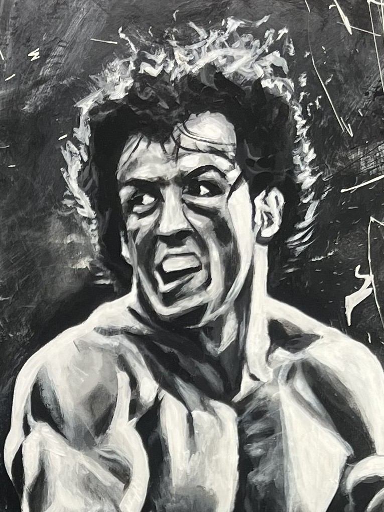 This original artwork of Rocky Balboa was painted using a boxing glove.  Story behind the Artwork (coming soon!)