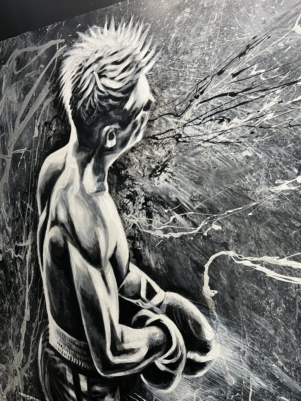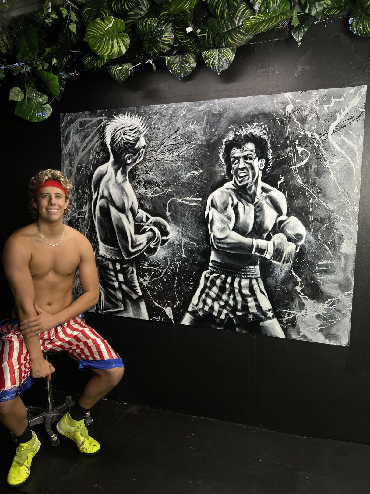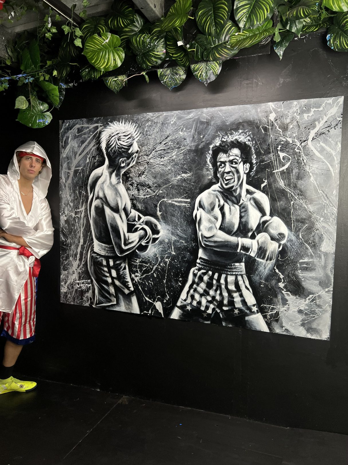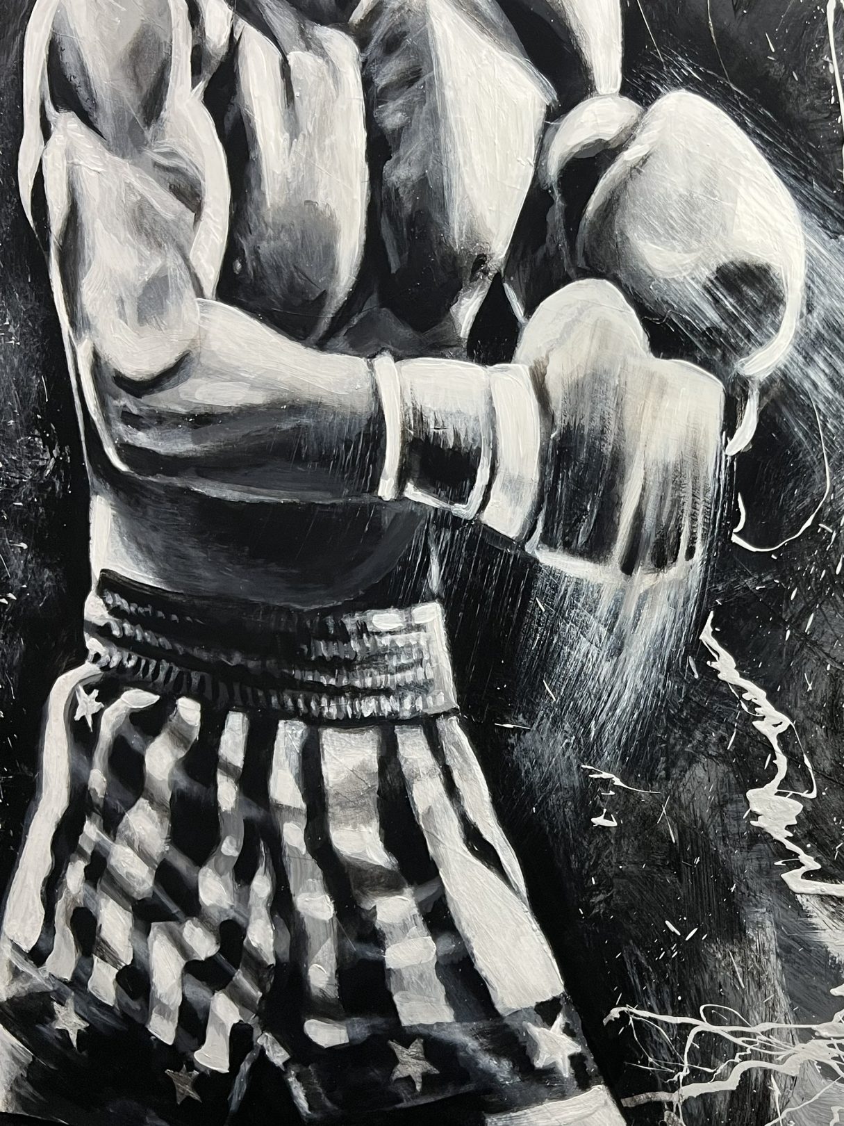 This original artwork of Rocky Balboa was painted using a boxing glove.  Story behind the Artwork (coming soon!)
